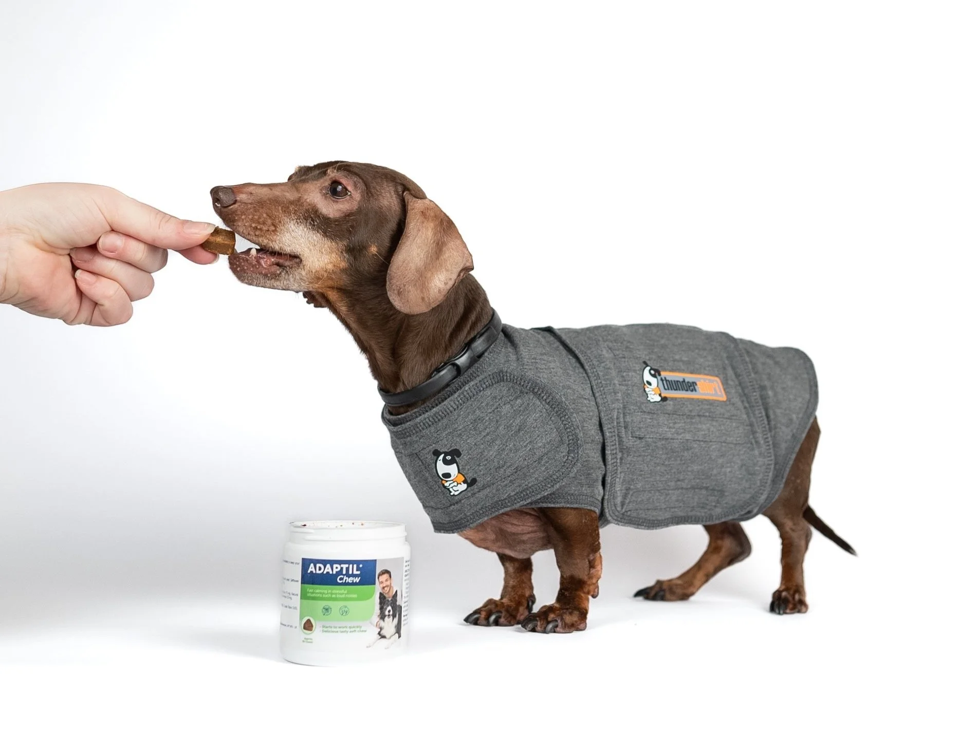 Our beautiful rescue dogs, Pops and Pomegranate are both extremely anxious rescues, who come from abusive pasts in puppy mills. Our senior dachshund can get very stressed on walks with loud noises and around new people. We also have Pomegranate, an ex-breeding bitch who has crippling separation anxiety and finds car rides and vet visits very stressful. To help the girls live their best life we have put many Adaptil products to use in our household. One of the quickest, easiest options for us is the tasty calming treats. Both girls love the taste and wolf them down, and just half a chew per day really helps them feel more settled and less on edge.