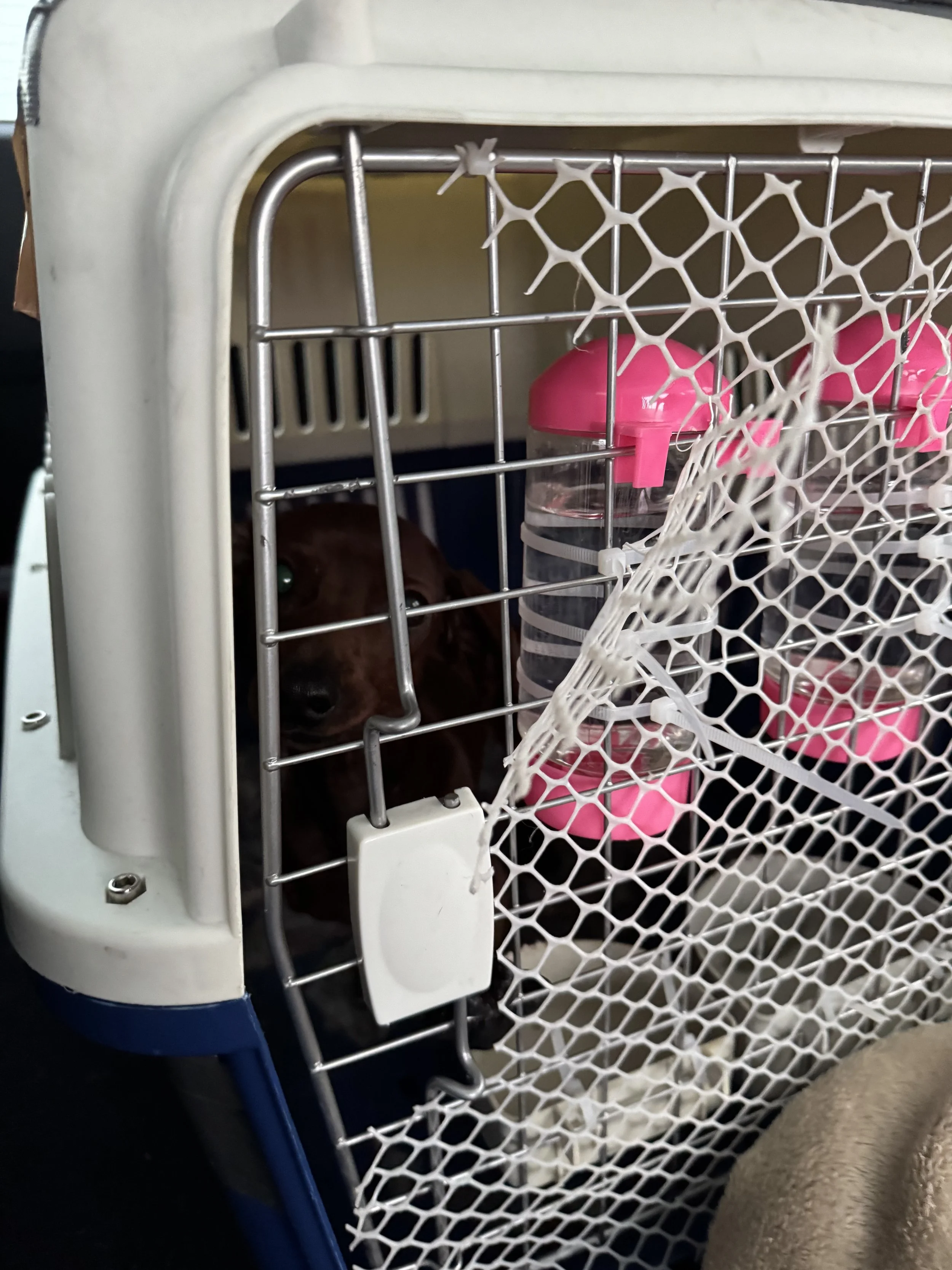 She landed safe and sound at 6am but had a lengthy process in the animal centre where the three of them needed to be cleared by customs and have their paperwork checked. The amount of admin and effort put into this by the charity is astounding and we got the call to go collect her from the transport company around 2pm.