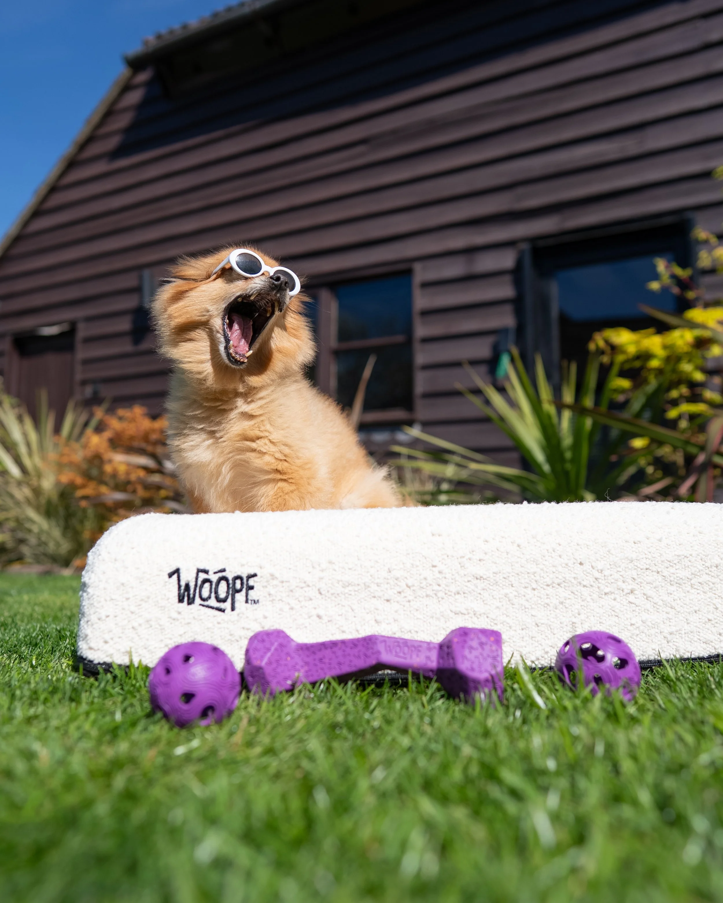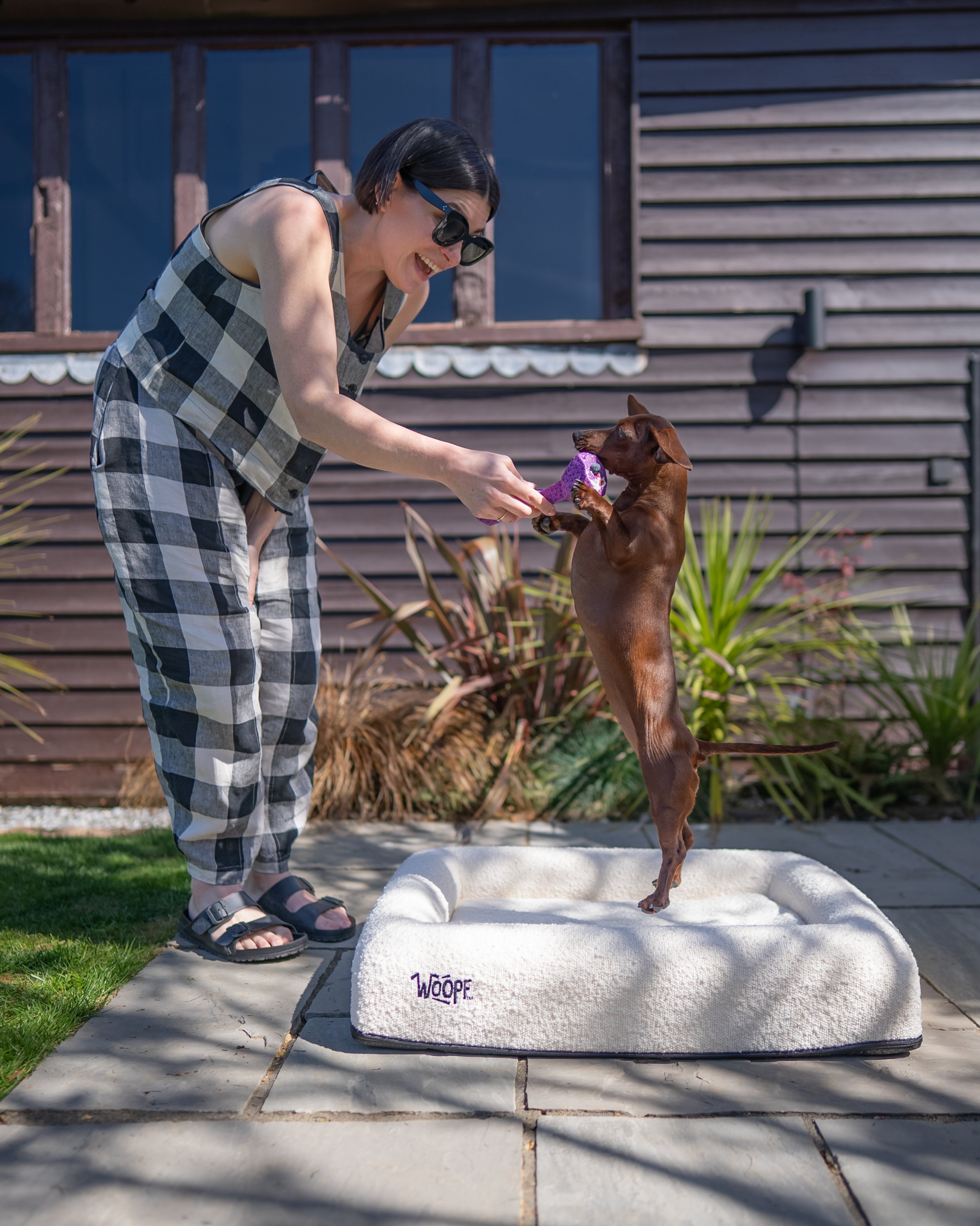As the weather heats up and we are entering a very sunny spring, ive been experimenting with other ways my pack can enjoy their favourite toy. By stuffing it with natural yoghurt, fresh berries and freezing, little Sugar had the time of her life nibbling and licking her Blocky Bone until she melted her way to her fruity treat. It’s the perfect solution to keep your dog’s calm, enriched and cool in summer months, with no squeakers, so we aren’t going to irritate the neighbours or worry about them eating any plastics!
